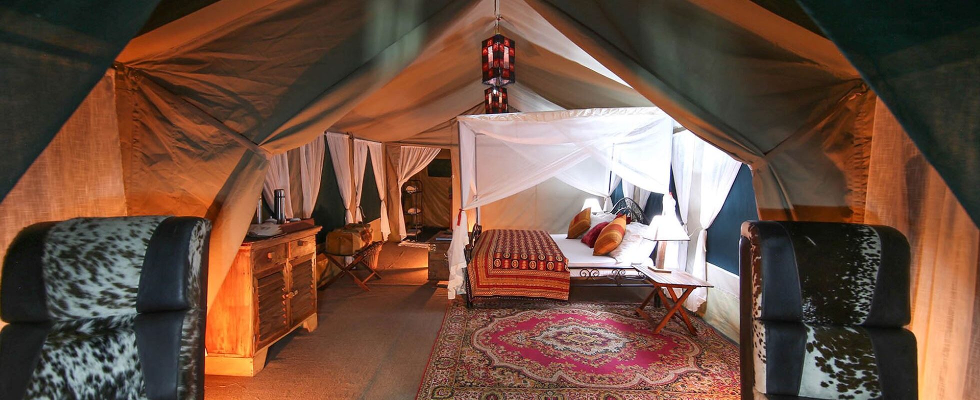 Lejren består af 11 flytbare safaritelte (herunder ét familietelt), alle lavet af lokalt produceret canvas med myggenet. Teltene har eget badeværelse og tilbyder al den komfort, du har brug for – med enkeltsenge eller dobbeltseng, stole, bagagestativer, sengetøj og varme tæpper i naturlige farver til de kølige nætter. Du kan også slappe af på din private veranda foran teltet. Når det er spisetid, serveres frisklavede mad i det store spisetelt under et imponerende akacietræ.