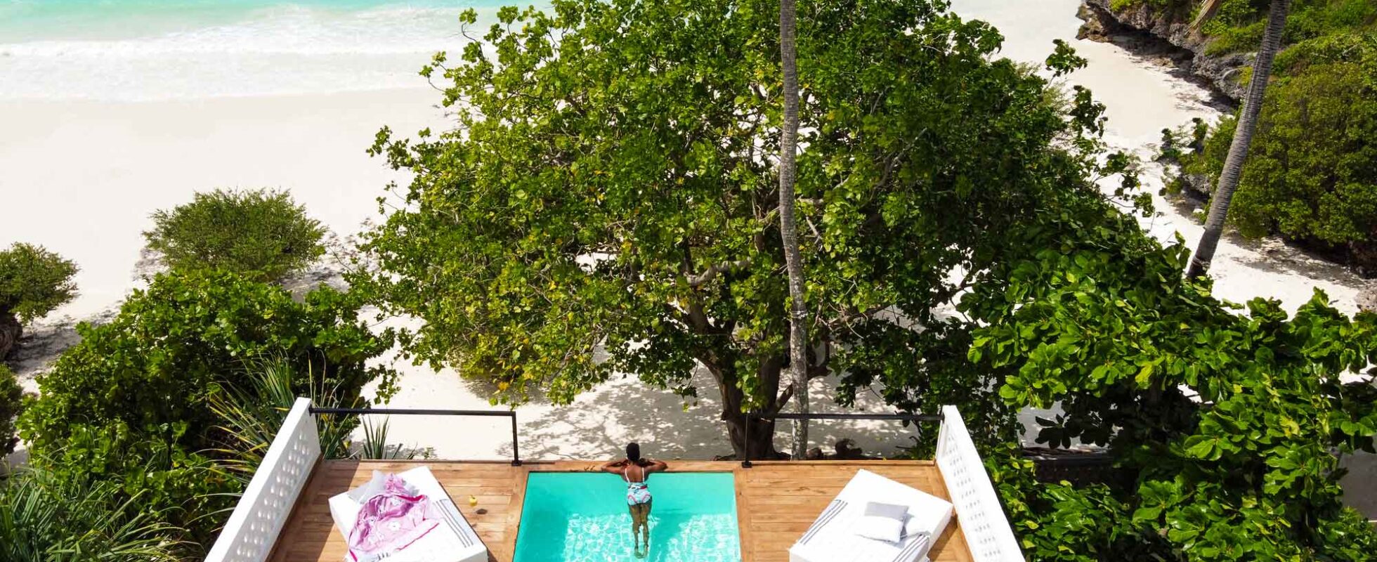 Upendo Beach ligger i Michamvi på Zanzibars østkyst, ved en af øens smukkeste og mest fredelige strande. Boutiquehotellet består af 2 villaer (kun for voksne), samt en stor familievilla med 6 værelser og 3 separate suiter, som kan lejes hver for sig. De mindre villaer har deres egen tagterrasse med pool og en stor terrasse med havudsigt, samt en privat strandstrækning. Indretningen er lys og smuk med hængekøje, flere store sofaer og solsenge – perfekt til en romantisk ferie. Familievillaen er lige så flot med en stor pool, sofaer placeret rundt omkring i huset og på terrasserne, samt en altan med havudsigt langs hele huset. Begge villaer har en privat butler, der tager sig af alle dine behov, og en restaurant med udsigt til det berømte Rock Restaurant, og serverer en varieret menu med lækre retter hele dagen.